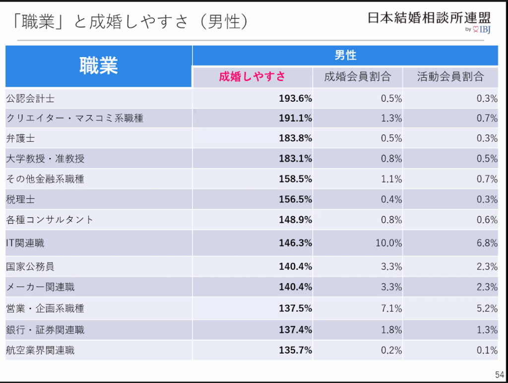 コロナ禍では、お金関係に強い「公認会計士」さんがモテモテでした!世の独身女性たちよ、わかりやすいぞ!*データの出し方が変更になったので比較しずらくてごめんなさい。