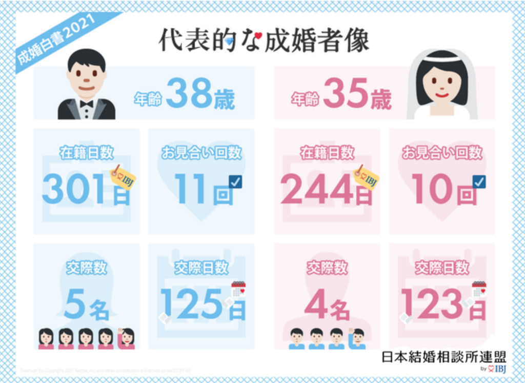 下記は「2021年の成婚白書」の代表的な成婚者像です。2021年と言えばコロナ真っただ中の年です。